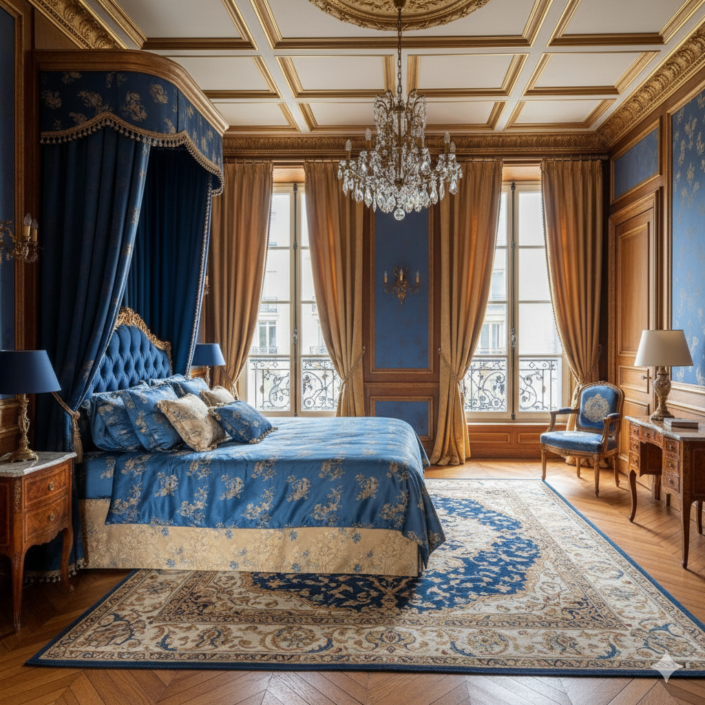 Notre chambre couleur pervenche peut accueillir deux personnes dans une lit King avec possibilité de rajouter un lit supplémentaire pour un extra invité
